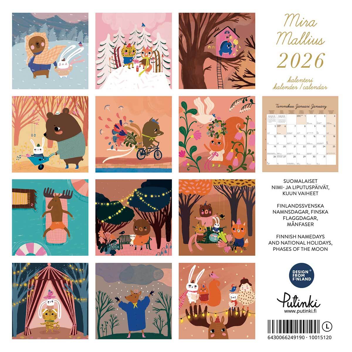 2026年 Putinki ウォールカレンダー 30×30cm Mira Mallius