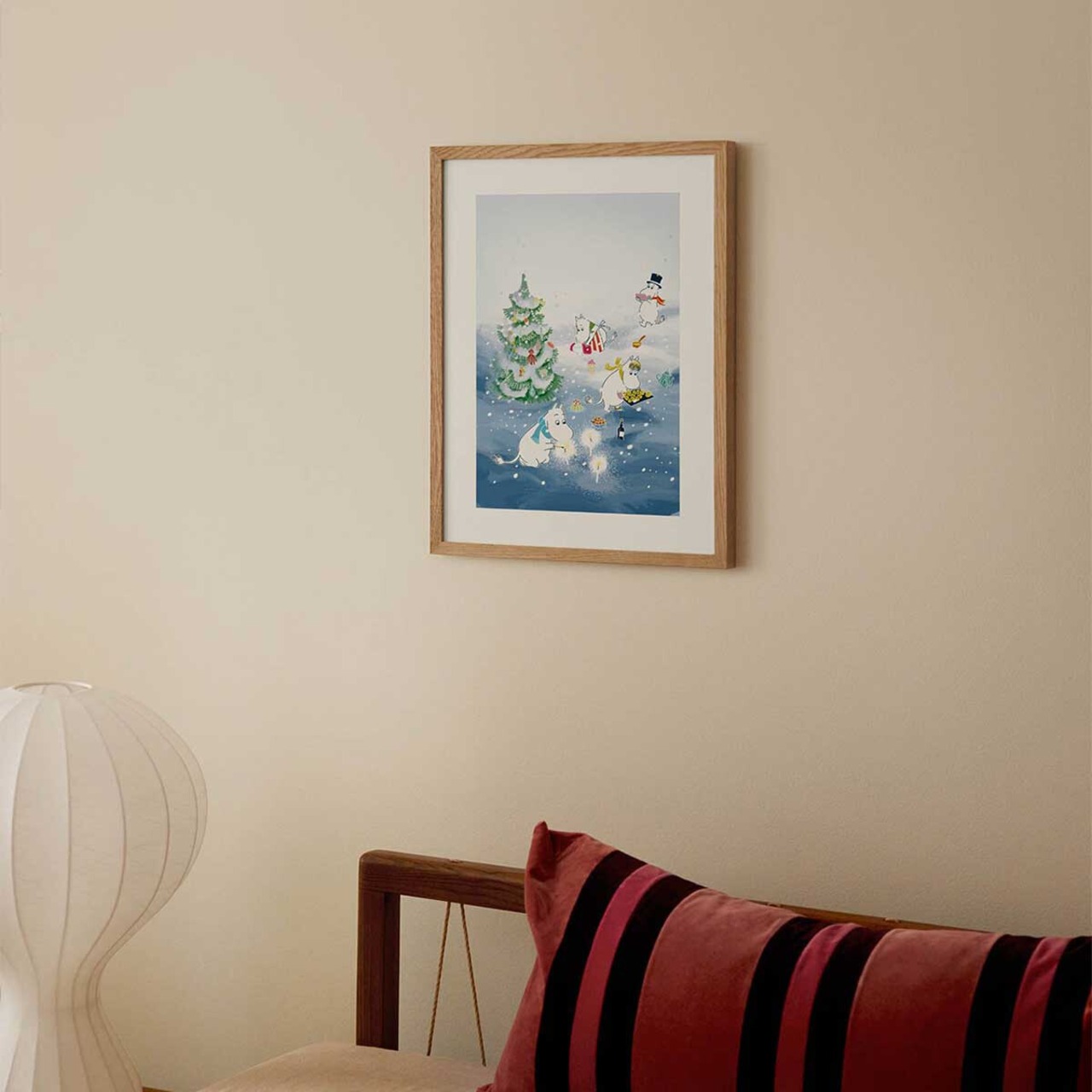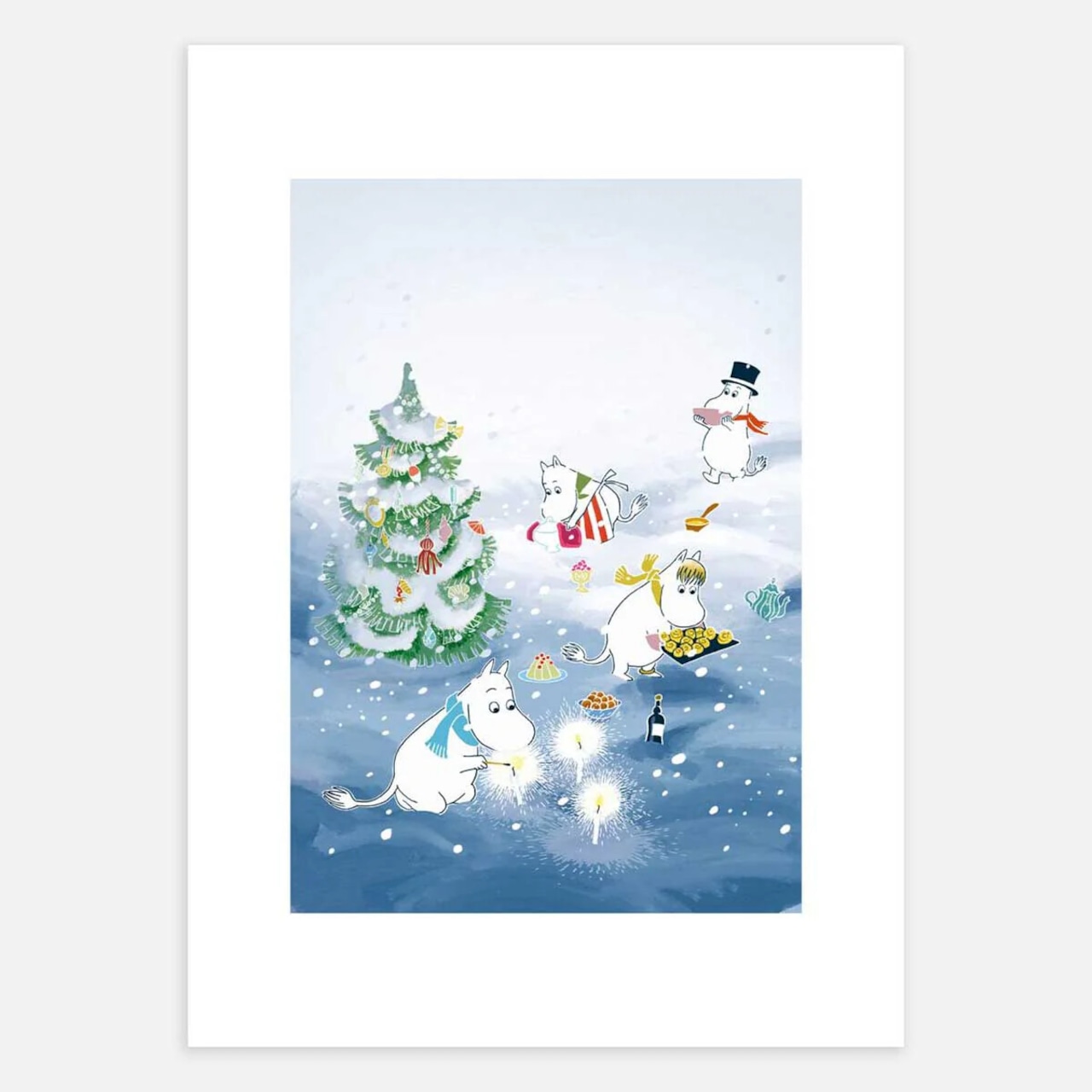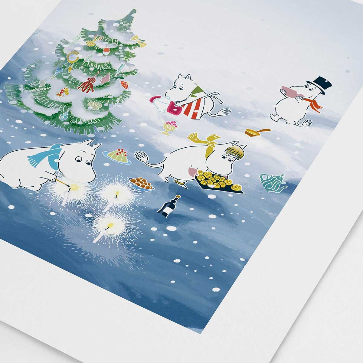 ムーミンたちがクリスマスツリーの準備をしているシーン。